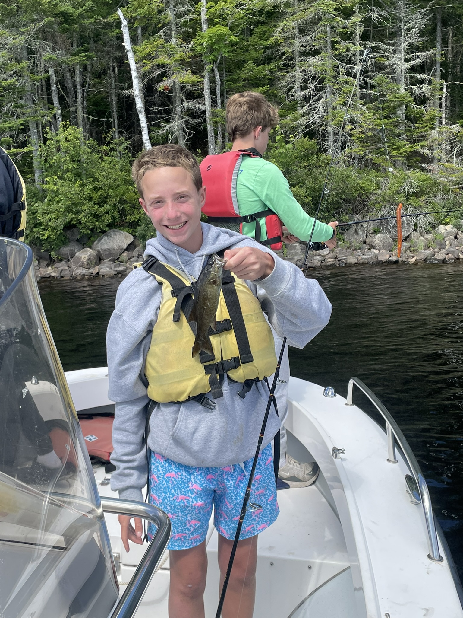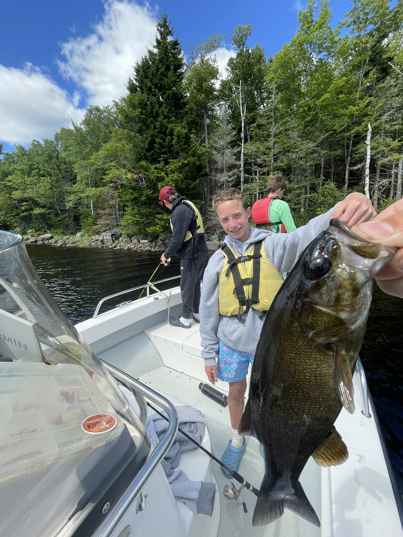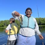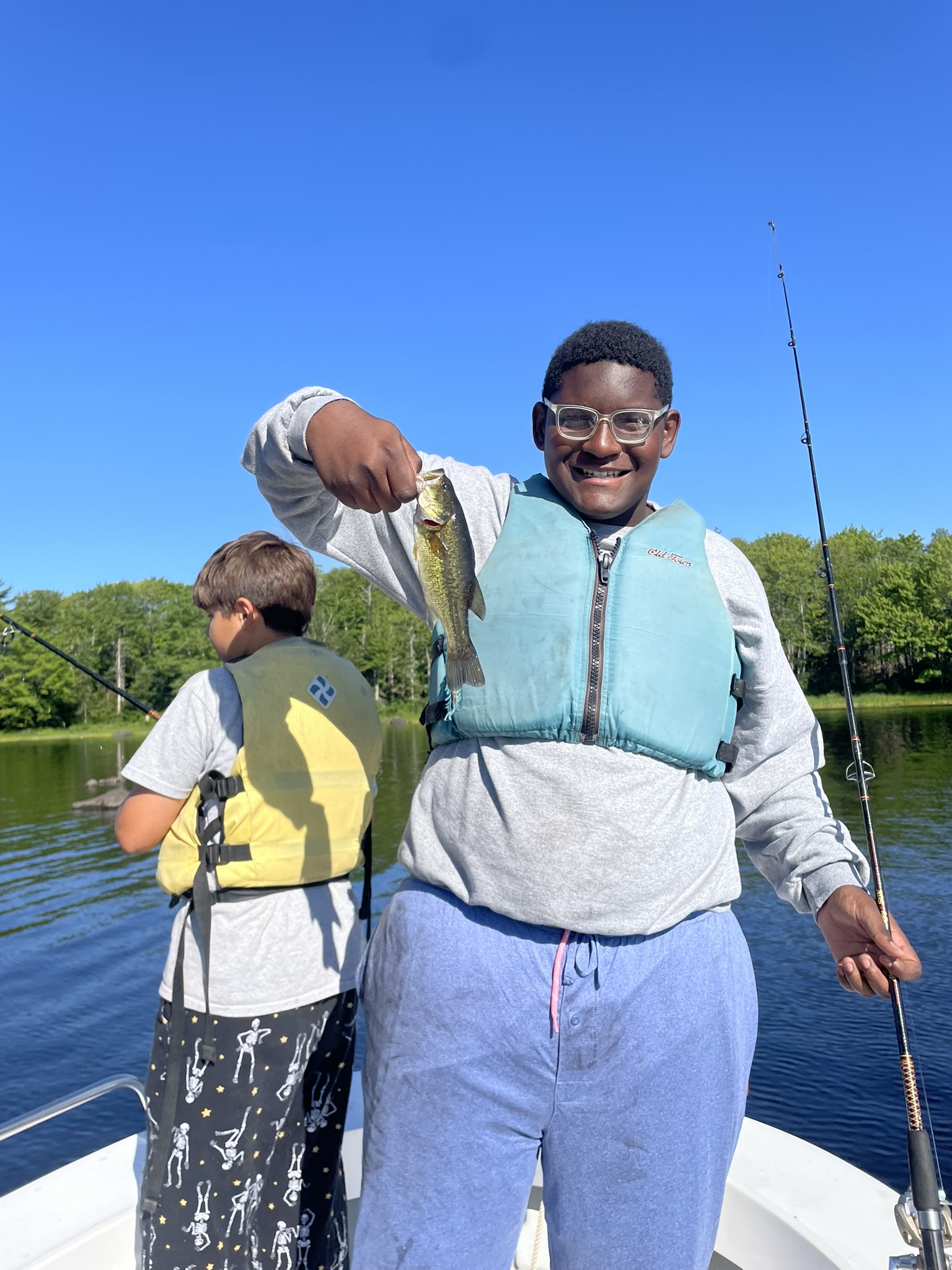 Fishing counselors Charles and Quinn led six campers on a half-day fishing adventure on Gardner Lake. The trip began with an early morning lake-side breakfast over the fire and ended with the catching of 15 fish!